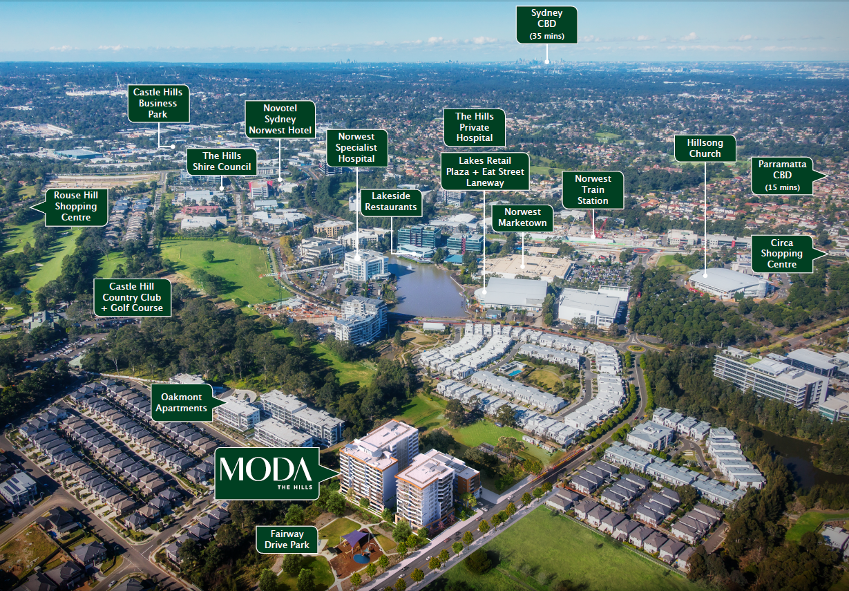 Nestled in the highly desirable Hills District, Moda promises an enviable lifestyle of sophisticated comfort and care free liveability. Moda offers unrivalled amenity and spectacular views from the rooftop courtyard to surrounding lakes, reserves and Castle Hill golf course.