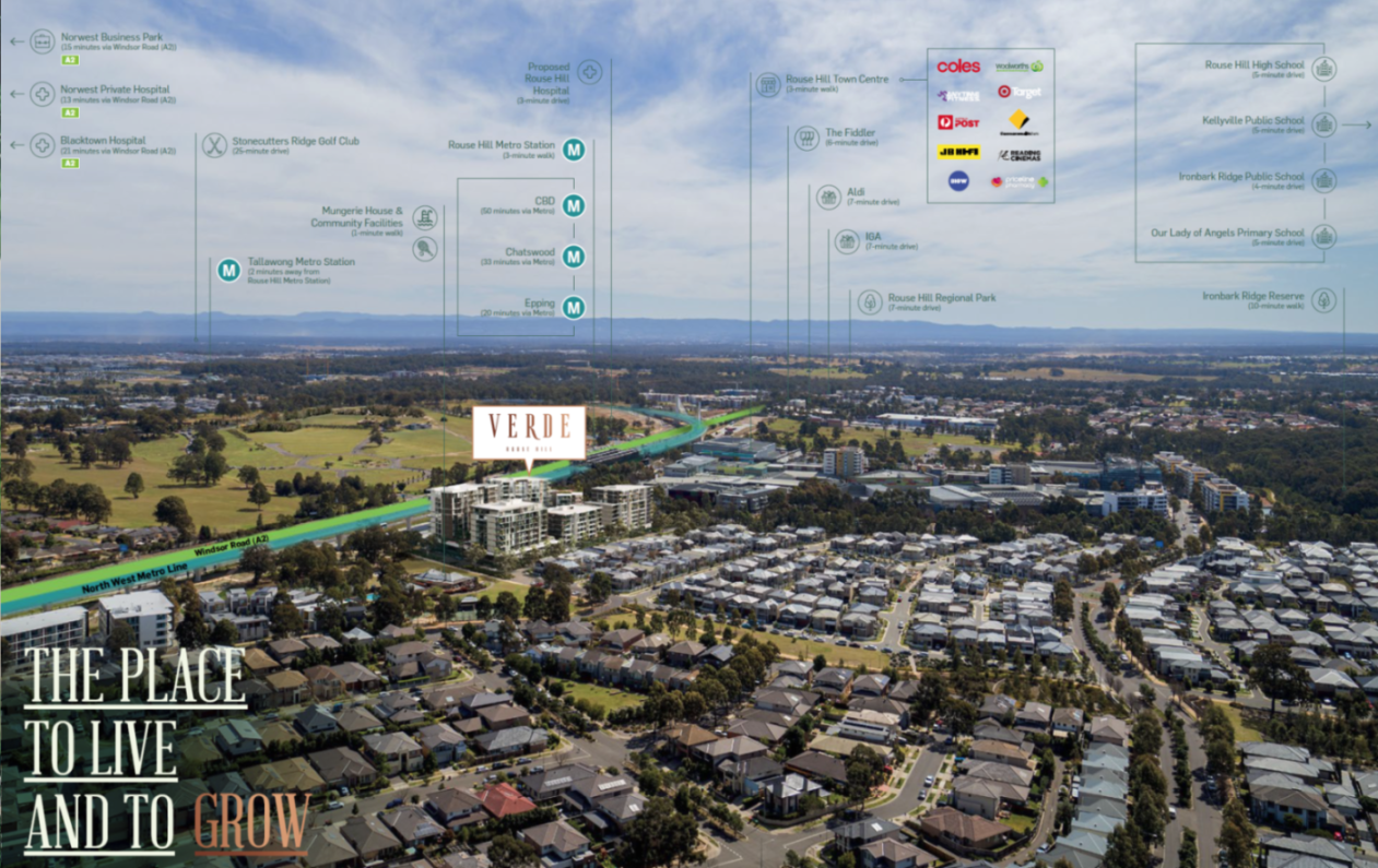 Verde Apartments Rouse Hill, nestled in one of the most dynamic areas in Sydney and a 3 minute walk from the Rouse Hill Town Centre and train station.