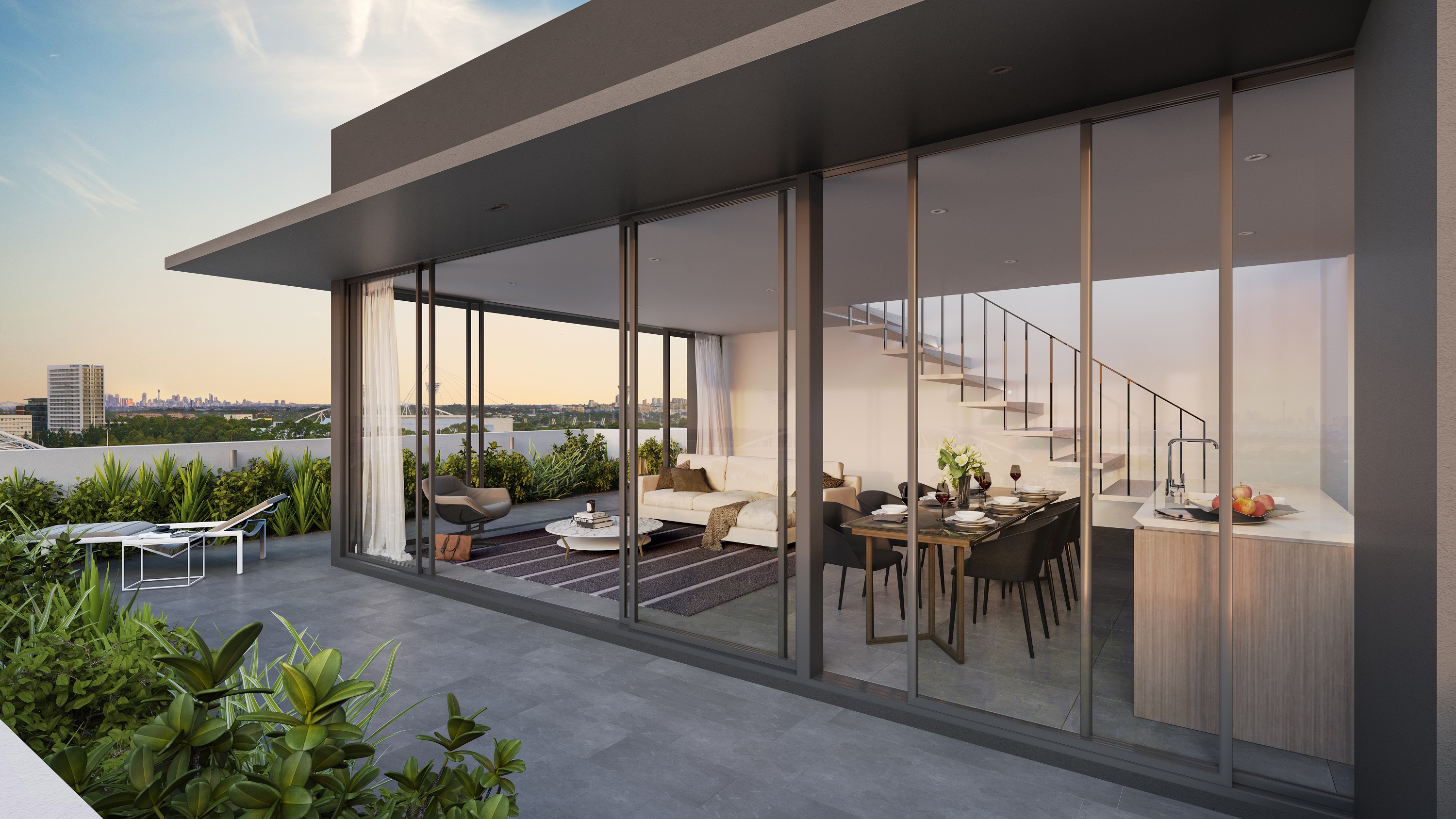 But Vivacity’s pièce de résistance is its indulgent three bedroom penthouses. Luxuriously appointed, these private havens of space and light feature expansive upper level roof terraces, capturing breathtaking views to Olympic Park and back to the city. Vast living areas are embraced by floor to ceiling glass to optimise the dramatic backdrop.
